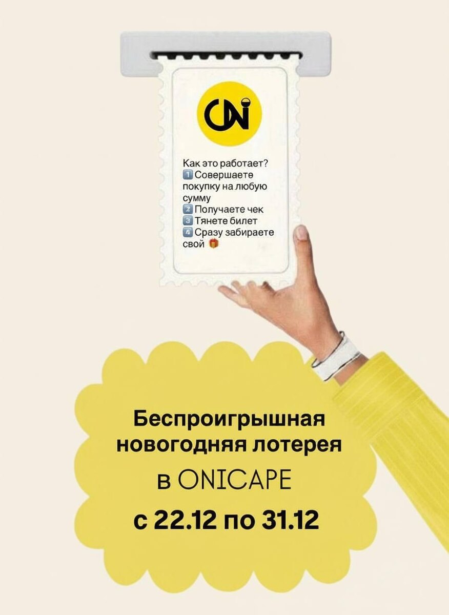 С 22 по 31 декабря каждый покупатель нашего офлайн-магазина ONICAPE может стать участником беспроигрышной лотереи.