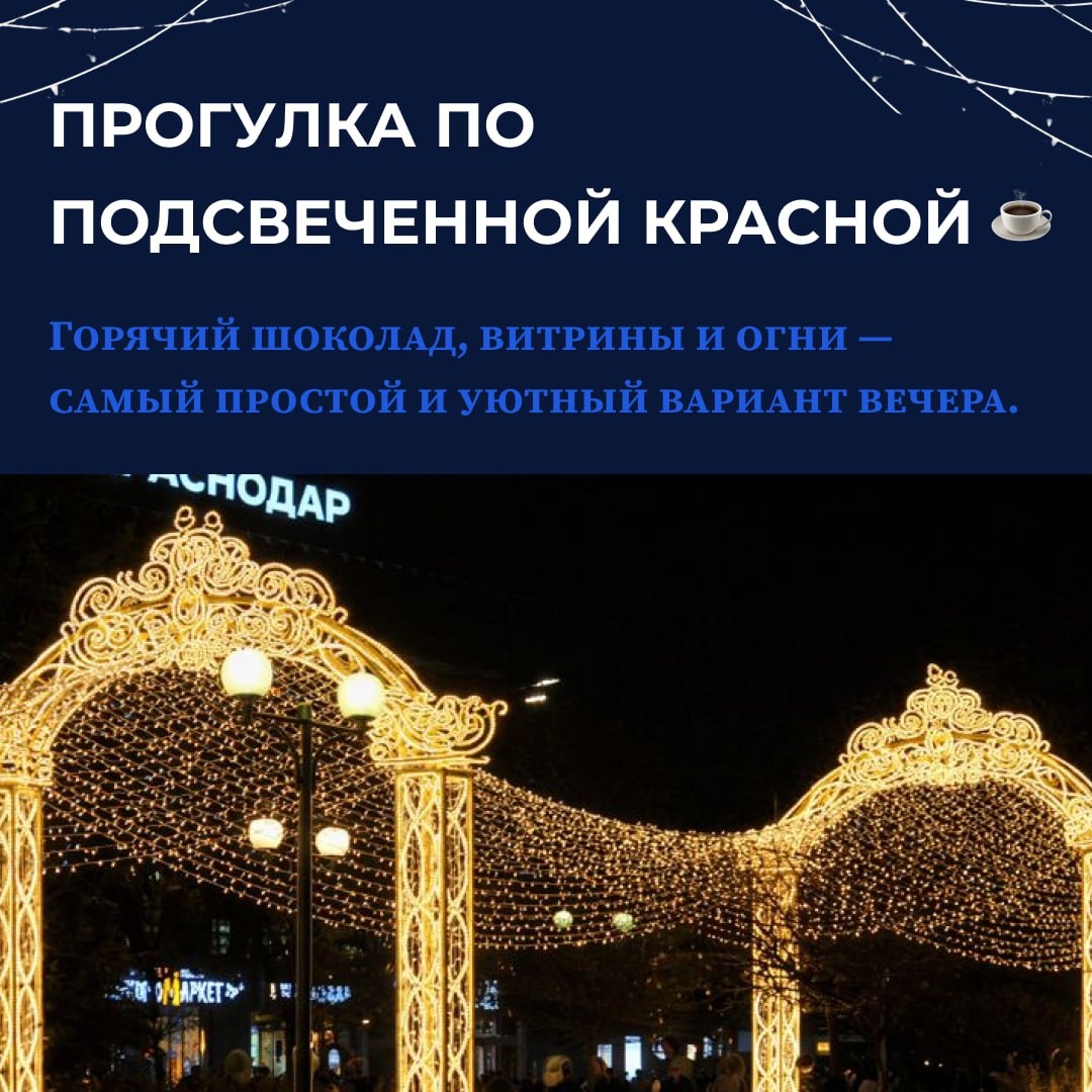 🎄✨ Небольшая подборка — что можно сделать уже сегодня и в ближайшие дни, чтобы прочувствовать город перед Новым годом ❄️ 1️⃣Концерты и филармония Праздничные программы в филармонии и на больших сценах — вечер, который задаёт настроение: оркестр, знакомые мелодии и неспешная атмосфера. Проверьте афишу и время сеансов. 2️⃣Семейные спектакли и шоу для детей В ближайшие дни идут детские постановки и ледовые представления — «Щелкунчик», интерактивные ёлки и другие семейные программы. Берите билеты заранее — уютные сеансы быстро раскупают. 3️⃣Прогулка по подсвеченной Красной и старому центру Огни, витрины и атмосферные окна кафе — отличный, простой способ поймать праздничное настроение. Иллюминацию центра включили и украшения работают — идеальное место для вечерней прогулки. 4️⃣Уютный ужин или маленький бар с друзьями Если хочется праздника без толпы — выбирайте камерный ресторан или бар с живой музыкой и тёплой кухней. Бронируйте заранее, чтобы не испортить вечер неожиданностями. ⭐Со