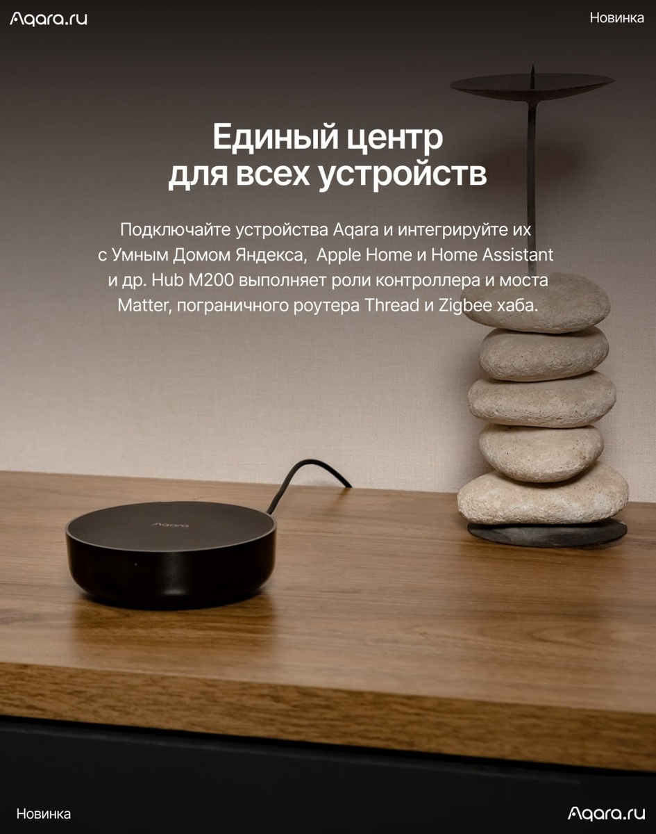 Хаб объединяет устройства Zigbee, Thread и Matter и интегрирует в популярные экосистемы как современные умные устройства, так и инфракрасную технику. Особенности устройства: 🔸 Хаб может стать единым центром управления для всего умного дома. Вы можете подключать устройства Aqara и интегрировать их в единую экосистему с Умным Домом Яндекса, Apple Home, Google Home и Home Assistant и так далее. 🔸 Встроенный ИК-пульт позволяет управлять телевизорами, проектором, кондиционером и другой бытовой техникой. Кондиционеры можно автоматизировать и настроить как умный климат-контроллер, используя датчик температуры Aqara. Это позволит поддерживать комфортный микроклимат в помещении. 🔸 Хаб М200 позволяет выполнять большинство автоматизаций даже при отсутствии сети. Свет, климат, датчики и охранные функции будут работать стабильно и без задержек. 🔸 Громкий динамик оповещает о протечке, тревоге, дверном звонке или сообщениях. Если: датчик температуры T1 фиксирует, что температура в комнате п