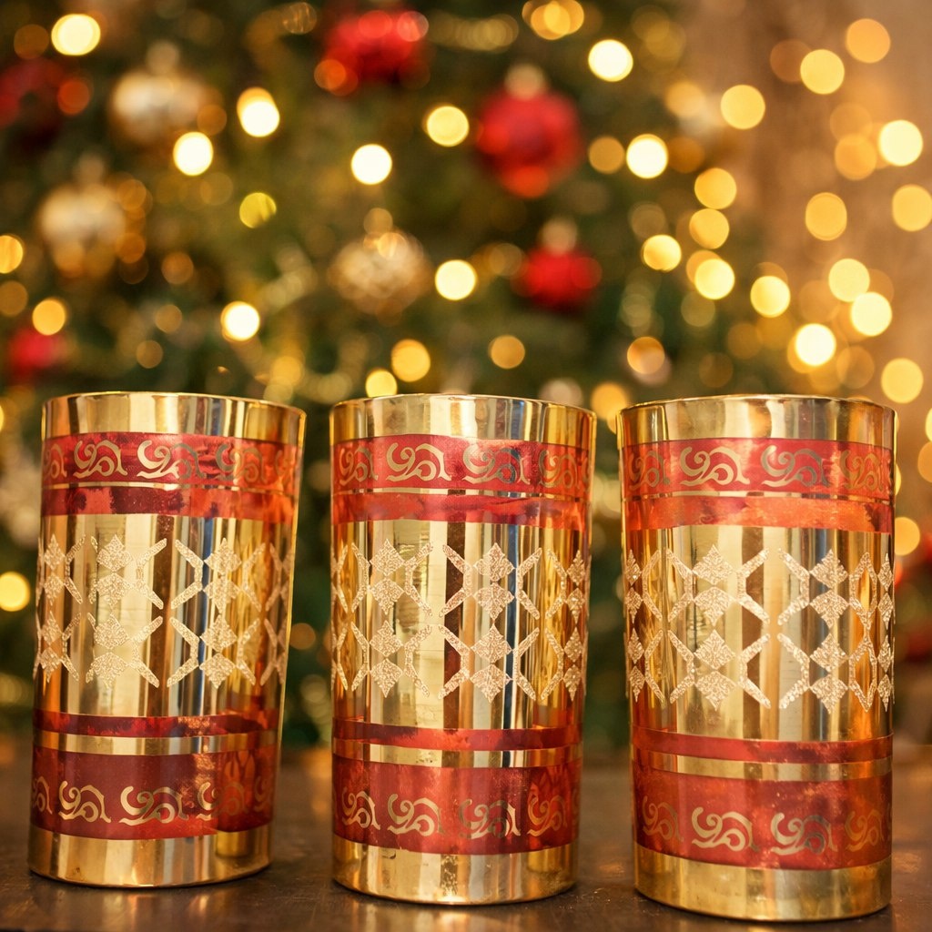 Вот такие, по-настоящему новогодние, стаканы производства Кореи времен СССР.