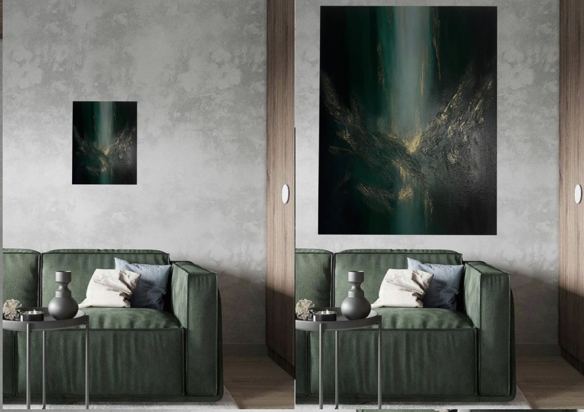 Слишком маленькая картина на большой стене «теряется». Слишком большая — давит.