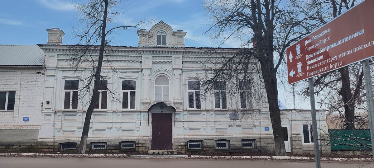 Бирск. На участке ул. Ленина, расположенной выше Октябрьской площади, по ул. Ленина, 44 находится ОКН республиканского значения – Дом хлебопромышленника Новикова. Кирпичное здание датируется концом 19в. К зданию имеется современный пристрой. Иван Илларионович Новиков владел кирпичной вальцовой паровой мельницей 🎡. На ней работали 40 человек, которые ежедневно мололи 2500 пудов зерна, что составляет порядка 40 тонн. Фирма Новикова существовала с 1891г. и производила крупчатку, гречневую крупу и ржаную муку. Помимо торговли Новиков активно занимался общественной жизнь города - был товарищем купеческого старосты и председателем попечительского совета Бирской торговой школы. Будучи Председателем ревизионной комиссии земской управы 🏢 он ездил в Санкт- Петербург с ходатайством на получение разрешения на открытие в городе реального училища, расположенного на ул. Интернациональная, 10. Мы уже не раз убедились, что крупнейшими купцами города были хлеботорговцы. Хлеб 🌾 был основным предметом