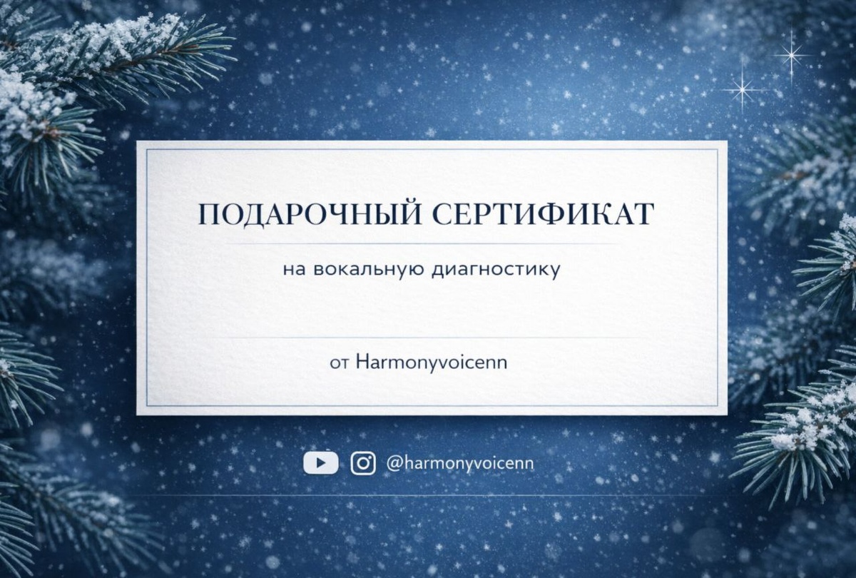Если вы ещё не выбрали подарок — есть идея, которая точно запомнится: электронный сертификат на вокальную диагностику в HarmonyVoiceNN