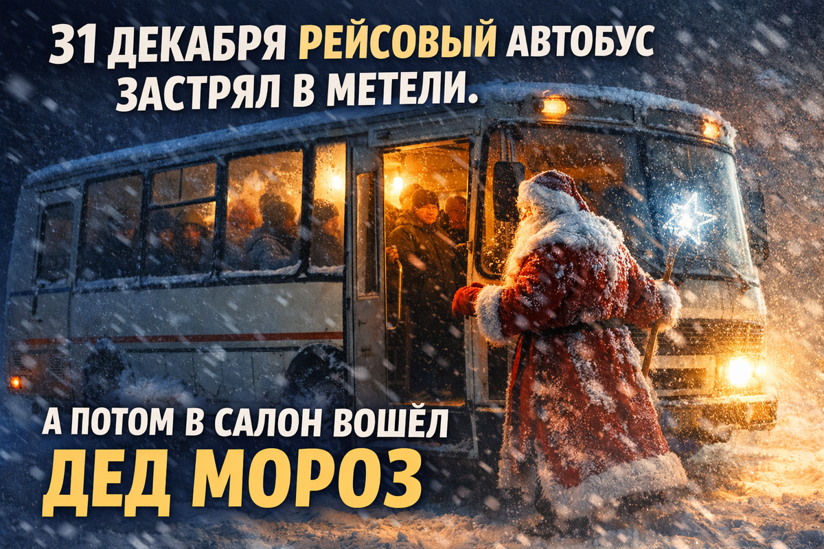 31 декабря рейсовый автобус застрял в метели. А потом в салон вошёл Дед Мороз