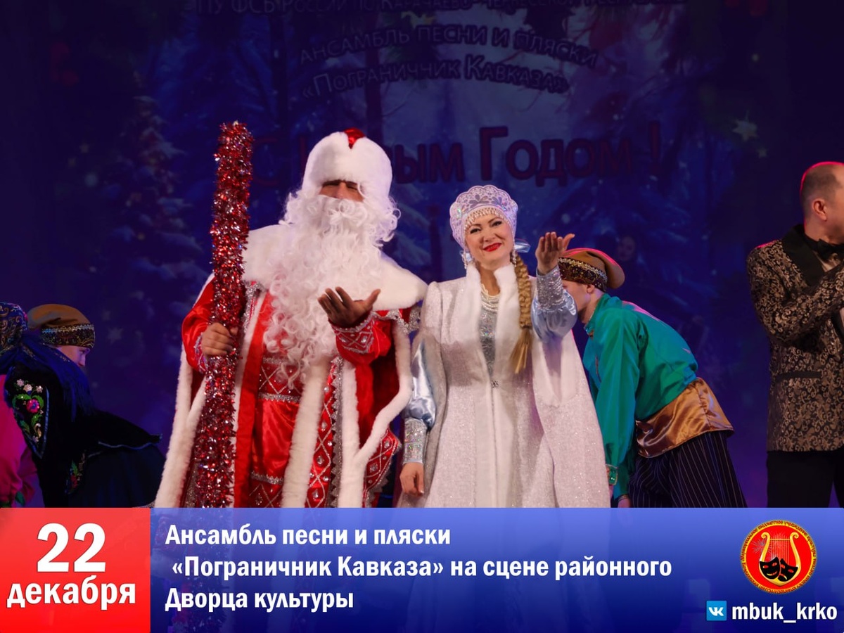 🎇✨ НАСТРОЕНИЕ «НОВЫЙ ГОД» ✨🎇 ❄️ Сцена Районного Дворца культуры стала местом встречи с истинным искусством. Ансамбль песни и пляски "Пограничник Кавказа" – прославленный коллектив пограничного управления ФСБ России по Карачаево-Черкесской республике – подарил зрителям вечер, наполненный невероятной атмосферой бесконечной любви к своей Родине и предвкушением новогоднего волшебства. 🎆 Артисты ансамбля, сочетающие в себе мощь офицерской выправки и отточенное мастерство, представили программу, которая затронула сердца каждого. ❄️ Особый колорит вечеру придало новогоднее настроение, которое тонко переплеталось с любимыми песнями и танцами. В преддверии праздников концерт стал не просто демонстрацией таланта, но и тёплым, объединяющим событием, напомнившим о ценности мира, единства и важности сохранения культурного наследия. 🎄 Концерт Ансамбля песни и пляски "Пограничник Кавказа" стал настоящим подарком для жителей округа, ярким и запоминающимся событием уходящего года. Мы благодари