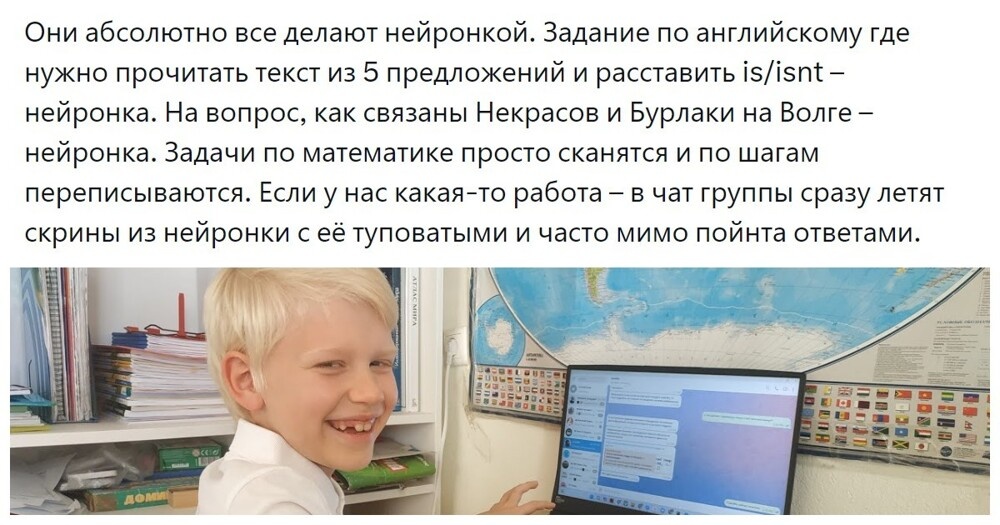 Нейросети, которые задумывались как перспективное направление, нацеленное на помощь в самых разных областях, как-то неожиданно превратились из помощника в «решателя» школьных заданий. Дети вбивают в ChatGPT задачи уровня «два умножить на два», слепо копируют ответ и довольно оперативно теряют способность думать, доказывать, мыслить. Простое уравнение, краткий пересказ, анализ стихотворения — зачем напрягаться, если есть нейросеть? Многие пользователи в шоке от масштабов этого явления, ведь дети уже даже не пытаются решить задачу самостоятельно и используют нейросети не для помощи в учёбе, а для её полного избегания. Они не сверяют факты, не вникают в суть, просто копируют первый попавшийся ответ. Но есть и сторонники этого подхода, которые считают, что не нужно тратить время на скукотищу, которая никогда не пригодится в жизни. Тем более что шпаргалки, сборники сочинений и решебники существуют давно. Где же та тонкая грань между разумным использованием технологий и цифровым слабоумием