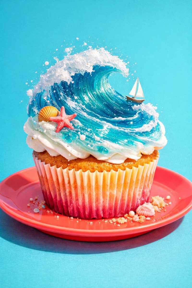 ? ✏️ Prompt: a surreal cupcake with a glistening ocean wave as frosting, displayed on a bright coral pink plate, vivid color palette, detailed textures, whimsical composition, soft shadows, high clarity. 🧩 Model: 🦋 Sora Images 🎭 Styles: Fashion, Luxury, Detailed
