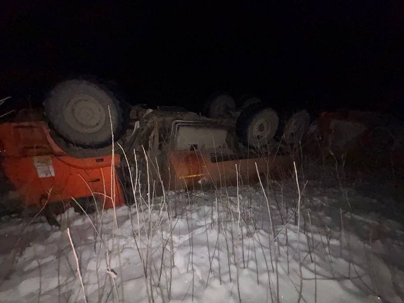 В Оренбуржье водитель большегруза гнал с большой скоростью и слетел в кювет