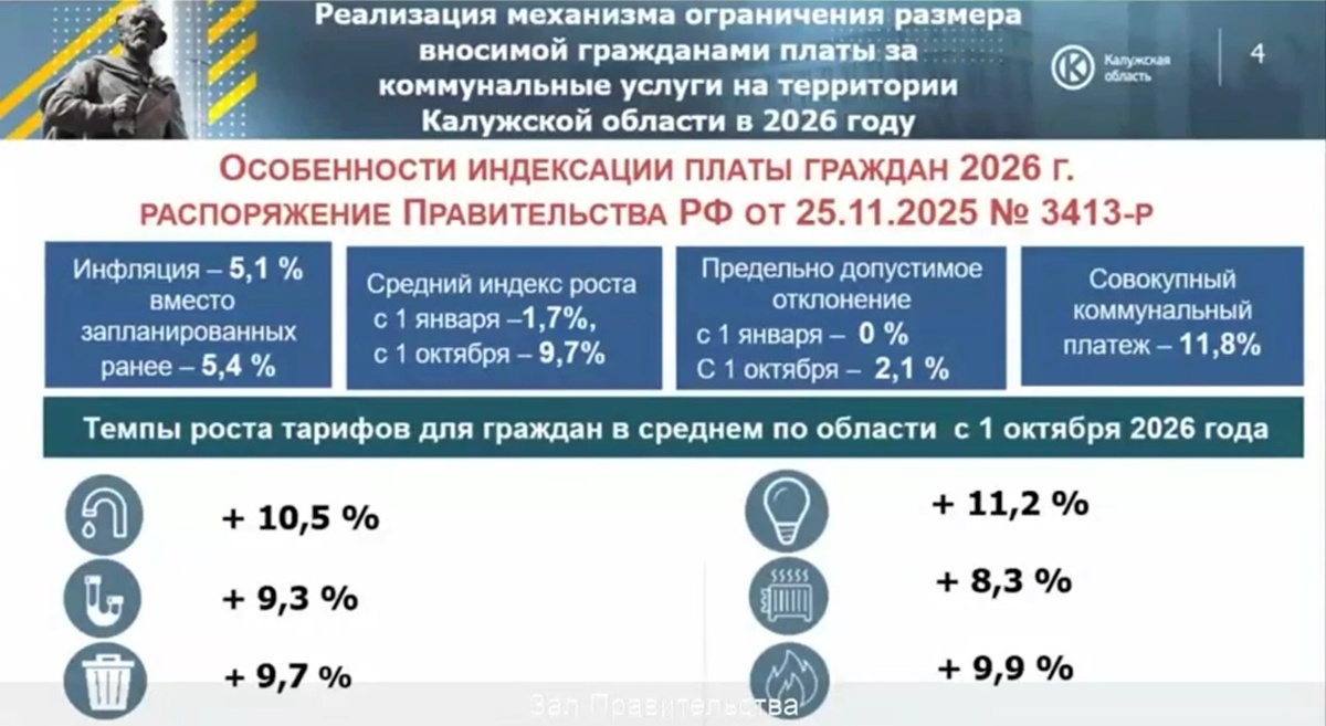 Тарифы ЖКХ повысятся в Калужской области и с 1 января и с 1 октября 2026 года