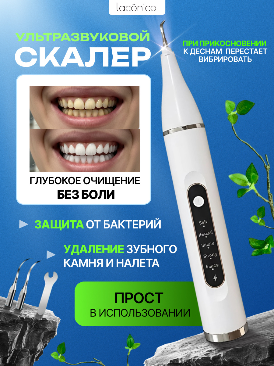 Ультразвуковой скалер «Laconico» — удобный инструмент для регулярного ухода за зубами в домашних условиях. Он помогает поддерживать чистоту, уменьшать налёт и чувствовать уверенность в улыбке каждый день.