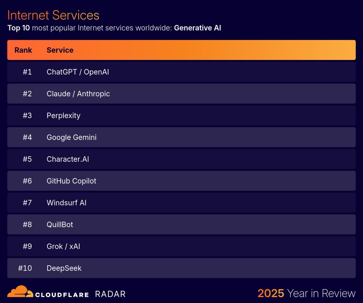 Это данные cloudflare, поэтому цифры по Deepseek, скорее, не отражают реальность. А я плотно сижу на Gemini + Perplexity. p.s. если говорить про API, то мы остановились на GPT-Mini, как наиболее адекватно работающую с русским языком и слабо развитой цензурой. Русский ИТ бизнес