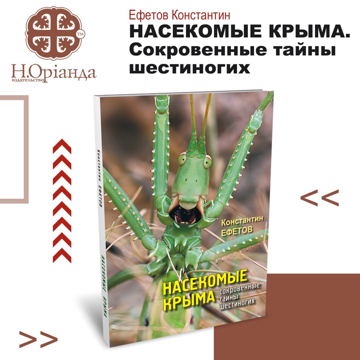 Сокровенные тайны шестиногих» Константина Ефетова. Перед читателем открывается удивительный мир насекомых, таящий много сокровенного и загадочного. С одной стороны, книга написана легко и занимательно. А с другой – она содержит важную научную информацию, которая будет полезна и доступна не только исследователям, краеведам, но и тем, кто небезразличен к современному состоянию природы и жизни обитателей нашей планеты. Причём читатель найдёт здесь много оригинальных наблюдений автора, подкреплённых неоспоримыми фактами. Ценность книги определяется ещё и тем, что это богато иллюстрированное издание с большим числом уникальных высококачественных фотографий. Заслуживают внимания также сведения о происхождении названий насекомых, часто уходящие корнями в древние мифологические сюжеты. Эта книга, без сомнения, станет украшением библиотеки любого, кто интересуется окружающим нас миром. https://n-orianda.ru/book/nasekomye-kryma-sokrovennye-tayny-shestinogih