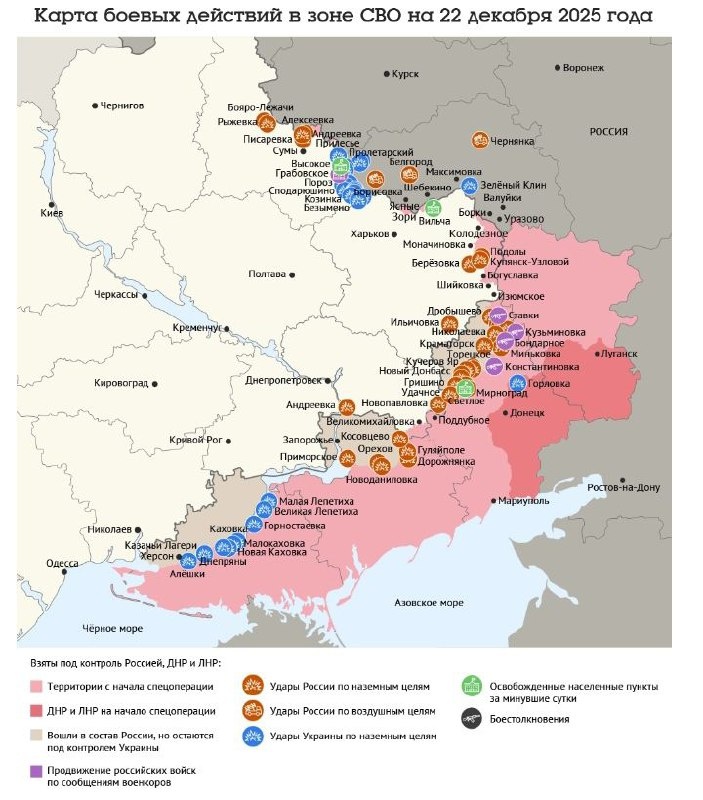 Сводка Министерства обороны Российской Федерации о ходе проведения специальной военной операции по состоянию на 22 декабря 2025 г
