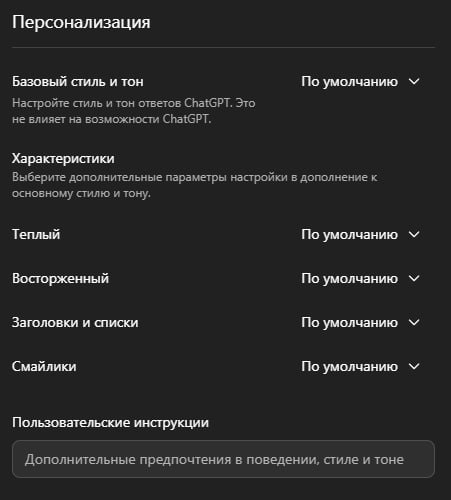 В ChatGPT на днях появились настройки стиля и тона ответов