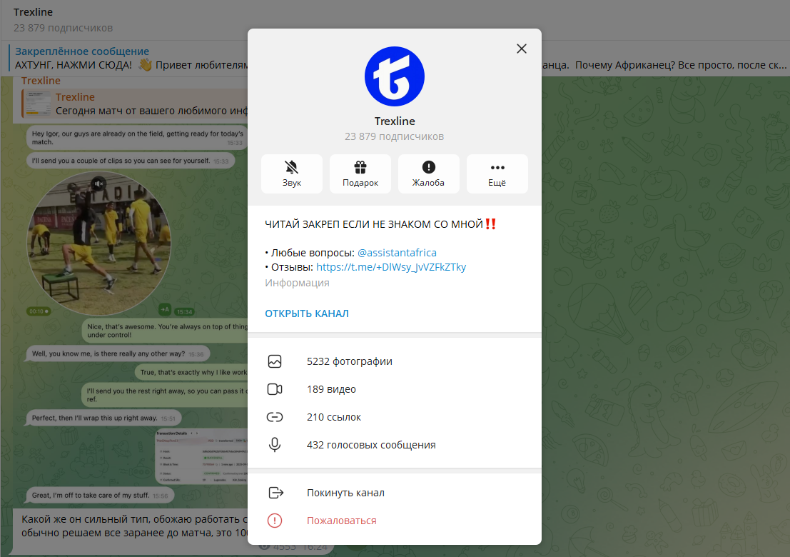Но за этими словами скрывается очередной ребрендинг старого ставочного скама, который Африканец запускает годами, просто меняя названия каналов.✅ А вот проверенный способ заработка. Проект Trexline появился в Telegram сразу с агрессивной рекламой платных прогнозов.