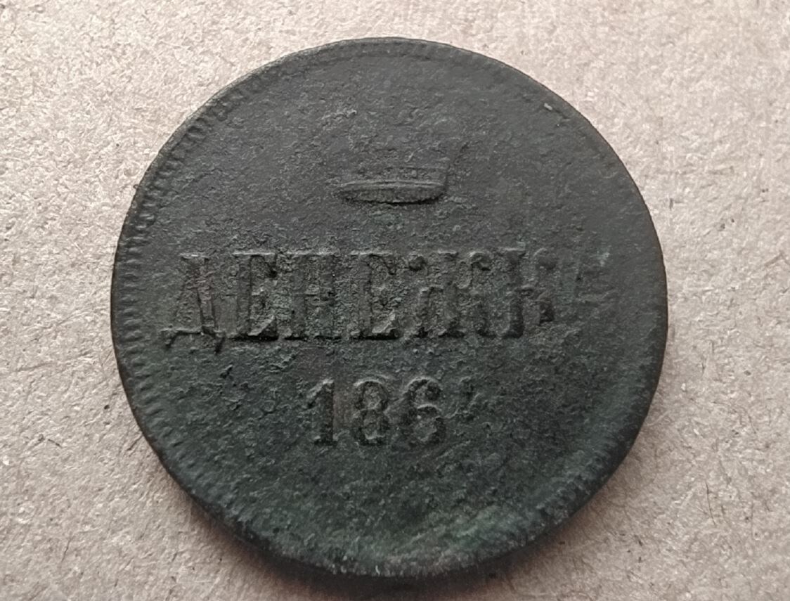 Начну с самого интересного факта про эту маленькую медную монетку. Факт: её тираж всего около полумиллиона экземпляров. А вот так выглядит монетка: Легко можно разглядеть, что монета покрыта естественной патиной, которая "смешалась" с зеленью (на реверсе это видно). Но чистить данную монетку нет никакого смысла, так как результат будут печальный. Во-первых, рельеф монеты довольно "низкий" (а патина его визуально подчеркивает), во-вторых, аверс после чистки может совсем испортиться. Монету не чистил, положил в альбом такой, какая она есть. Вообще, номинал "денежка" это такой номинал, которыми не разбрасываются. К примеру, у меня в коллекции всего три монетки этого номинала и периода. Еще штуки три совсем никакие, а потому я их даже не учитываю. И пусть у денежек не всегда достойный внешний вид, самое интересное - это собрать как можно больше разных в любом состоянии. А дальше, если будет возможность, попытаться начать собирать в сторону качества монет. А сколько может стоить моне