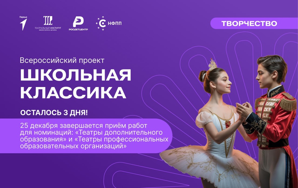 Достойно ль упускать дары судьбы Иль стоит ухватить за хвост везенье... О чём это мы? О твоей возможности попасть на большую сцену вместе со «Школьной классикой»! Лови её скорее — приём заявок на проект Первых для театров дополнительного образования и театров профессиональных образовательных организаций заканчивается! 🎭 Регистрируйся до 25 декабря — по ссылке! 🎭 Движение Первых. Творчество #ШкольнаяКлассика