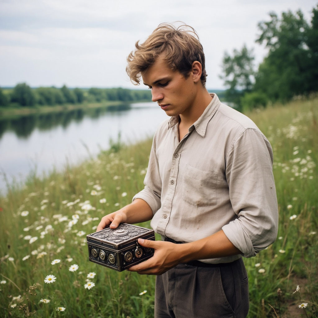 Жарким летом 1921 года поэт Сергей Есенин отдыхал в деревне Константиново Рязанской губернии. Однажды вечером, прогуливаясь вдоль реки Оки, он заметил странный металлический предмет, лежащий среди травы. Подняв его, Есенин почувствовал легкое покалывание в руках. Предмет оказался небольшой металлической коробочкой с кнопками и символами, похожими на руны. Есенину стало любопытно, и он решил исследовать находку. Когда он нажал одну из кнопок, вокруг него возникло голубоватое свечение, и мир вокруг начал расплываться... Сергей открыл глаза и обнаружил себя посреди леса. Перед ним стояли двое мужчин в камуфляже и с оружием. Один из них представился капитаном Александром Петровским, командир группы специального назначения ГРУ. Александр объяснил, что эта территория является секретным полигоном, и попросил объяснить свое присутствие. Выяснилось, что металлические часы на руке Петрова активировали устройство перемещения во времени. Устройство было разработано группой ученых специально для