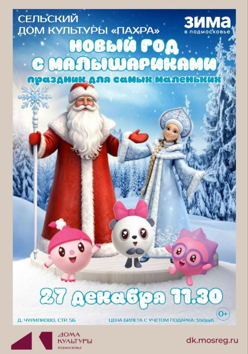 ✨ Отличные новости для родителей малышей! 🎄 Приглашаем самых маленьких — от одного года до шести лет — на особенный праздник «Новый Год с Малышариками»! ✨ Это будет душевный кукольный спектакль с самыми добрыми героями, которых обожают дети. Вместе мы окунёмся в атмосферу сказки: будем играть, смеяться и помогать нашим друзьям встретить праздник! 🧸🎉 🚫 Возраст: 0+ 📆 27.12.2025🕒11:30 🏢 Сельский дом культуры (СДК) «Пахра» 📍 г.о.Домодедово, дер.Чурилково, ул.Чурилково, д.5Б 💰 Цена: 550 ₽ 🎫 Купить билет: https://iframeab-pre5158.intickets.ru/event/68676386/ ✅ Мероприятия Домодедово https://dzen.ru/id/66f10385cc4c5a16f7b5fb02 http://vk.com/domodedovo_events http://dzen.ru/domodedovo_events