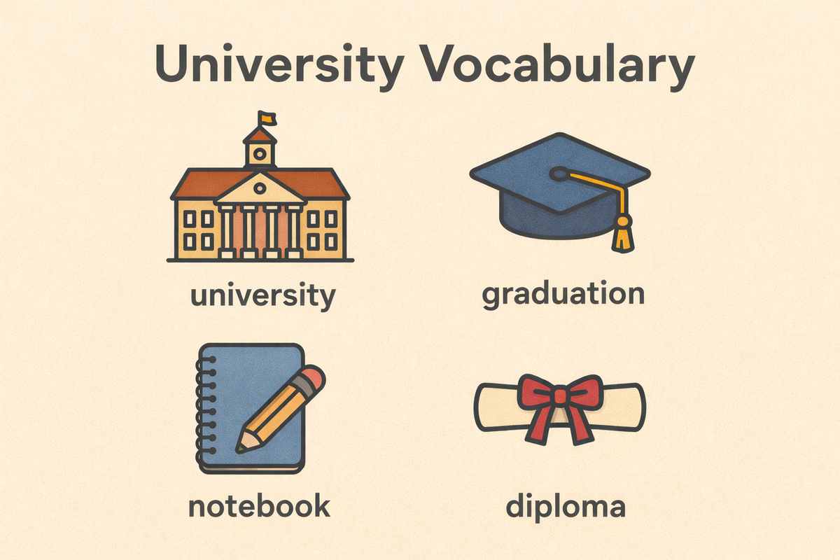 ΠΠ½Π°Π½ΠΈΠ΅ ΡΡΠΈΡ ΡΠ»ΠΎΠ² Π½Π΅ΠΎΠ±Ρ ΠΎΠ΄ΠΈΠΌΠΎ Π½Π΅ ΡΠΎΠ»ΡΠΊΠΎ Π΄Π»Ρ ΡΠ΄Π°ΡΠΈ ΠΌΠ΅ΠΆΠ΄ΡΠ½Π°ΡΠΎΠ΄Π½ΡΡ ΡΠΊΠ·Π°ΠΌΠ΅Π½ΠΎΠ². ΠΠΎΠ½ΠΈΠΌΠ°Π½ΠΈΠ΅ ΡΠΎΠ³ΠΎ, ΡΠ΅ΠΌ ΠΎΡΠ»ΠΈΡΠ°Π΅ΡΡΡ lecturer (ΠΏΡΠ΅ΠΏΠΎΠ΄Π°Π²Π°ΡΠ΅Π»Ρ) ΠΎΡ associate professor (Π΄ΠΎΡΠ΅Π½ΡΠ°), ΠΈΠ»ΠΈ ΠΊΠ°ΠΊ ΠΏΡΠ°Π²ΠΈΠ»ΡΠ½ΠΎ ΠΎΠ±ΡΠ°ΡΠΈΡΡΡΡ ΠΊ dean (Π΄Π΅ΠΊΠ°Π½Ρ), ΠΏΠΎΠΌΠΎΠ³Π°Π΅Ρ Π±ΡΡΡΡΠ΅Π΅ Π°Π΄Π°ΠΏΡΠΈΡΠΎΠ²Π°ΡΡΡΡ ΠΊ Π°ΠΊΠ°Π΄Π΅ΠΌΠΈΡΠ΅ΡΠΊΠΎΠΉ ΡΡΠ΅Π΄Π΅. ΠΠ΅Π· ΡΡΠΎΠ³ΠΎ ΡΠ»ΠΎΠ²Π°ΡΡ Π±ΡΠ΄Π΅Ρ ΡΠ»ΠΎΠΆΠ½ΠΎ apply to university (ΠΏΠΎΡΡΡΠΏΠΈΡΡ Π² ΡΠ½ΠΈΠ²Π΅ΡΡΠΈΡΠ΅Ρ), ΡΠ°Π·ΠΎΠ±ΡΠ°ΡΡΡΡ Π² ΡΠ²ΠΎΠ΅ΠΌ curriculum (ΡΡΠ΅Π±Π½ΠΎΠΌ ΠΏΠ»Π°Π½Π΅) ΠΈΠ»ΠΈ Π²ΠΎΠ²ΡΠ΅ΠΌΡ ΠΏΠΎΠ»ΡΡΠΈΡΡ scholarship (ΡΡΠΈΠΏΠ΅Π½Π΄ΠΈΡ). ΠΠ½Π°Π½ΠΈΠ΅ ΡΠ΅ΡΠΌΠΈΠ½ΠΎΠ² ΠΏΠΎΠΌΠΎΠΆΠ΅Ρ Π²Π°ΠΌ Π½Π΅ Π·Π°ΠΏΡΡΠ°ΡΡΡΡ Π² ΠΊΠΎΡΠΏΡΡΠ΅, Π±ΡΡΡΡΠΎ Π½Π°ΠΉΡΠΈ lecture hall (Π°ΡΠ΄ΠΈΡΠΎΡΠΈΡ) ΠΈΠ»ΠΈ dormitory (ΠΎΠ±ΡΠ΅ΠΆΠΈΡΠΈΠ΅), Π° ΡΠ°ΠΊΠΆΠ΅ ΠΏΡΠ°Π²ΠΈΠ»ΡΠ½ΠΎ ΠΎΡΠΎΡΠΌΠΈΡΡ library card (ΡΠΈΡΠ°ΡΠ΅Π»ΡΡΠΊΠΈΠΉ Π±ΠΈΠ»Π΅Ρ), ΡΡΠΎΠ±Ρ ΠΏΠΎΠ΄Π³ΠΎΡΠΎΠ²ΠΊΠ° ΠΊ examination period (ΡΠ΅ΡΡΠΈΠΈ) ΠΏΡΠΎΡΠ»Π° ΡΡΠΏΠ΅ΡΠ½ΠΎ.