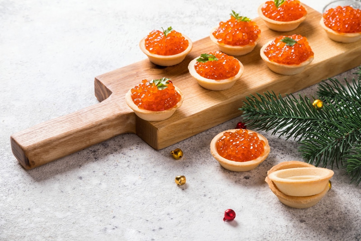Эта закуска на Новый год 2026 эффектно выглядит на праздничном столе: миниатюрные корзинки подчеркивают статус блюда, а хрустящая основа делает вкус более выразительным. Икра привносит насыщенность, пользуясь репутацией одного из самых ценных продуктов по содержанию легкоусвояемых белков и микроэлементов. Это закуска, которая требует минимальных усилий, но производит впечатление благодаря текстурному контрасту и яркому вкусу. Что берем: Как готовим: Тарталетки с икрой гармонируют с рыбными закусками, свежими салатами и блюдами с морепродуктами. Их вкус хорошо раскрывается рядом с мягкими сырами и легкими сливочными дипами, а из напитков традиционно подходят игристые варианты. Другие закуски, которые могут вам понравиться: