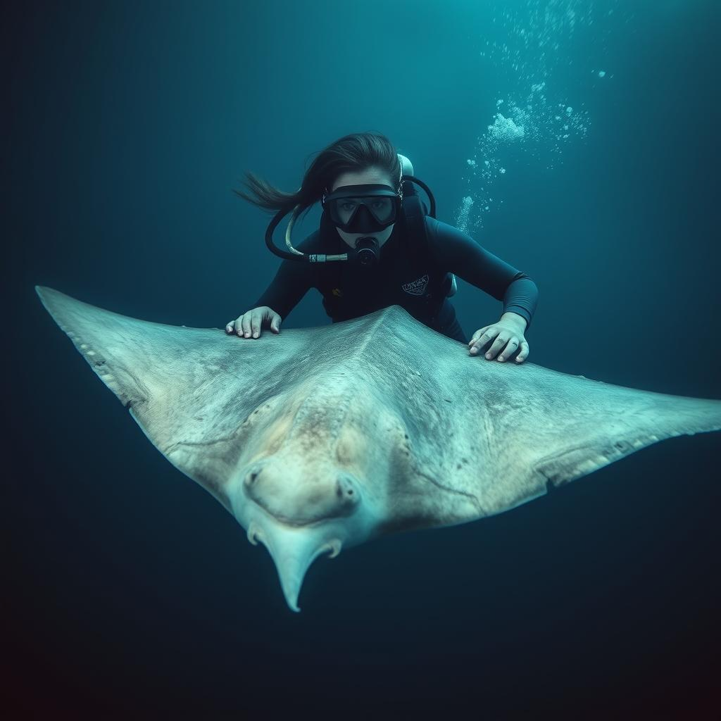 Манта дрогнул, его крылья напряглись, готовые к рывку. Елена замерла. Она висела в воде неподвижно, позволяя течению слегка покачивать её. Скат тоже успокоился. Казалось, между человеком и гигантским морским созданием установилась незримая связь. Он понимал. Он устал от боли и, возможно, инстинктивно чувствовал, что это маленькое существо в странной «чешуе» может избавить его от мучений.