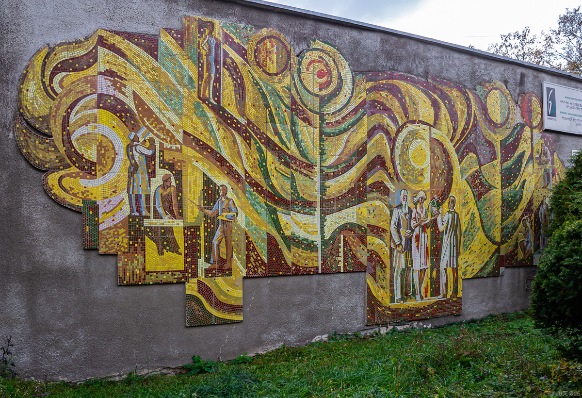 Год создания: 1970 Материал: керамическая плитка Сохранность: хорошая Автор: Григорий Перцев Адрес: улица Ломоносова, 105 Мозаика изображает генетиков и селекционеров, работающих над созданием новых сортов сельскохозяйственных культур. Панно создано в 1970 году Григорием Михайловичем Перцевым. Перцев известен и другими работами, включая мозаику в Таловском районе на стенах НИИ имени Докучаева, а также панно с изображением вселенной в фойе Дворца культуры имени 50-летия Октября, снесенного в 2022. С 1971 по 1978 год Григорий Перцев был главным художником Воронежа. С 2000 года живописец и керамист жил в Италии.