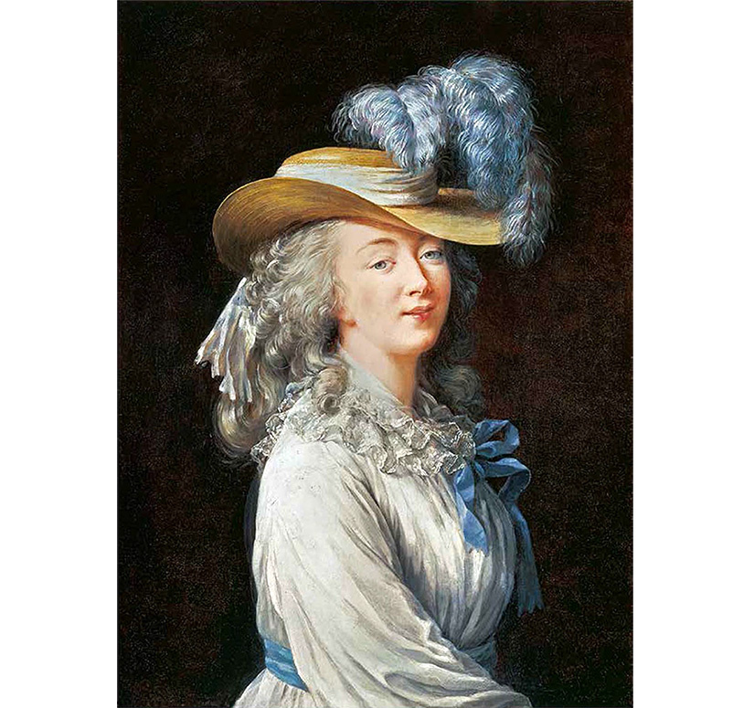 В своих «Souvenirs» французская художница Мари-Элизабет-Луизы Виже-Лебрён (1755–1842) следующим образом описывает встречу с Жанной Бекю, мадам Дюбарри (1743–1793), которая, выйдя из самых низших слоев общества, в конечном итоге прошла через королевский дворец на пути к гильотине: В 1786 году я впервые отправилась в Лувесьенн, где обещала написать портрет мадам Дюбарри. Мне было чрезвычайно любопытно увидеть фаворитку, о которой я так много слышала. Мадам Дюбарри, вероятно, было около сорока пяти лет. Она была высокого роста, но не слишком высокая; полная, с довольно большой, но очень красивой грудью; лицо её всё ещё было очаровательным, черты лица правильные и изящные; волосы пепельно-серые и кудрявые, как у ребёнка; только цвет лица начинал бледнеть. Она приняла меня с большой любезностью и показалась мне очень учтивой; но я обнаружила, что в её остроумии было больше естественности, чем в манерах. Помимо того, что у неё был взгляд кокетки, её удлинённые глаза никогда не открывались по