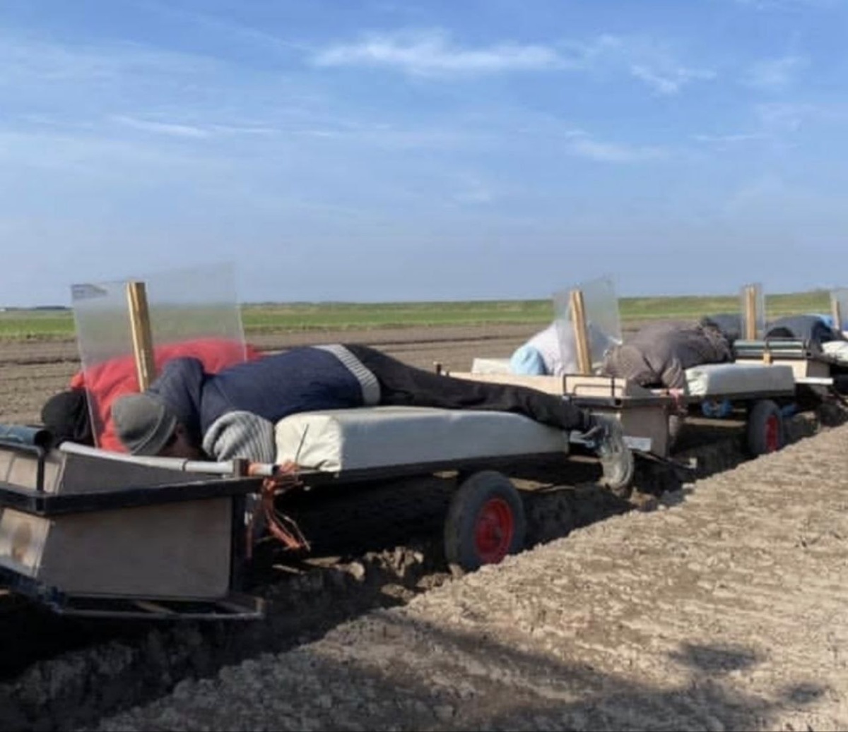 Это посадка луковичных в открытый грунт в Нидерландах. Местные фермеры совмещаю ручной труд и механизацию.