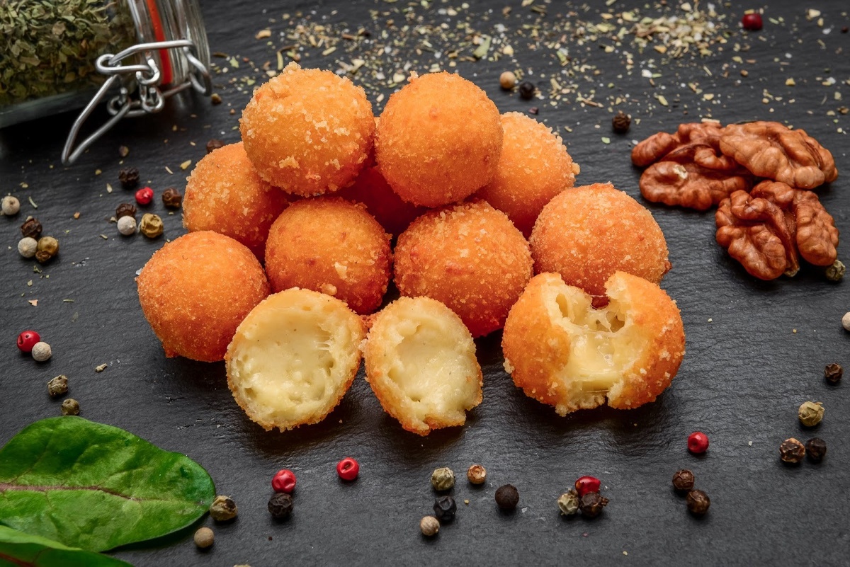 Это универсальная закуска, в которой балансируются насыщенный вкус сыра и нежная структура. По этому рецепту закуски на Новый год очень быстро готовятся, эффектно выглядят на тарелке и позволяют экспериментировать с добавками: орехи, зелень, специи или легкие соусы создают разные варианты одного и того же блюда. Благодаря высокому содержанию белка шарики из сыра хорошо насыщают и подходят как самостоятельная закуска или элемент ассорти. Что берем: Как готовим: Сырные шарики отлично дополняют мясные и овощные нарезки, хорошо смотрятся рядом с тарталетками и бутербродами, а также гармонируют с легкими овощными салатами. На праздничном столе они становятся частью ассорти закусок, создавая яркий акцент и разнообразие вкусов. Другие закуски, которые могут вам понравиться: