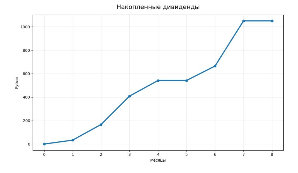 Если не видел отчёт №7 — тык • Сумма пополнений за месяц: 13 500 руб. • Сумма пополнений всего: 85 400 руб. • Текущая стоимость вложений: 87 822 руб. (+20.2% м/м) • Прирост денег в портфеле за месяц: +1 254 руб. • Прирост денег в портфеле всего: +2 422 руб. • Прирост/убыток в % за месяц: +2.07% • Общий прирост в % от вложенных средств: +2.84% • Цель выполнения суммы в 100 000 руб: 87.82% • Получено купонов/дивидендов за месяц: 0 руб. • Получено купонов/дивидендов за всё время: 1 050.71 руб. 📊 Изменение позиций м/м Дополнительно, помимо суммы пополнений и стоимости вложений — сравниваю, какие позиции и насколько увеличились в своём весе относительно прошлого отчётного периода. Подсчёт в формате было → стало: Интер РАО 🔌 : 2 900 шт -> 3 400 шт = +17% м/м Х5 🍏 : 4 шт = без изменений Лукойл ⛽️ : 2 шт = без изменений Новатэк 🔋 : 4 шт -> 6 шт = +50% м/м Полюс ⛏ : 2 шт -> 0 шт = продано Сбербанк 🏦 : 36 шт -> 45 шт = +25% м/м Татнефть П ⛽️ : 27 шт = без изменений Транснефть ⛽️ : 5 шт