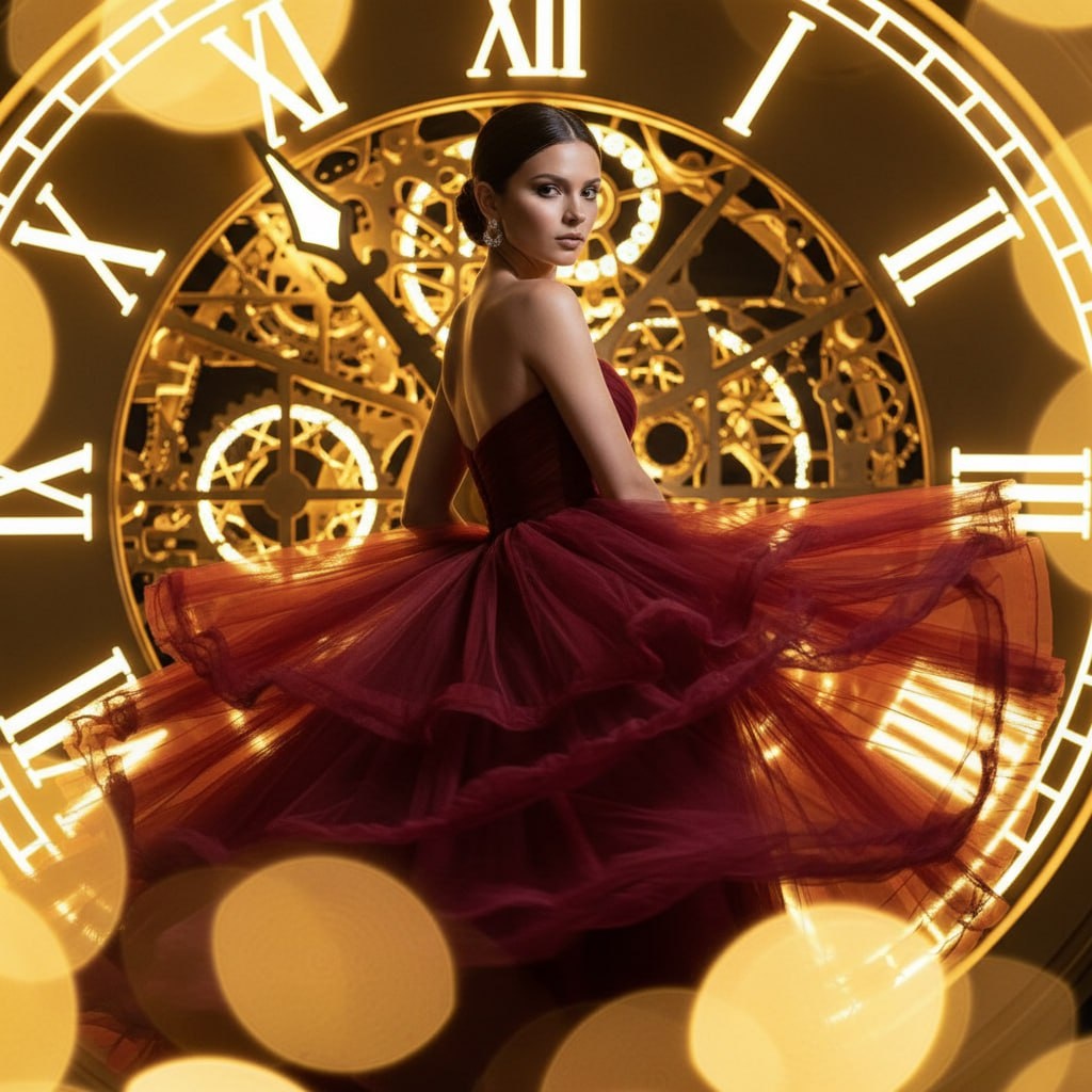 Нейронки научились в идеальный Face Swap, и грех этим не пользоваться. Забудьте про кривые маски — теперь можно залететь прямиком в топовый кампейн модного дома. 🌚 Фишка этого промпта — максимальное сходство с оригиналом благодаря параметру --face_fidelity 1.0. На выходе получаем сочный кадр из дорогого кино: красное платье-пламя, бешеная динамика и золотой циферблат на фоне. Выглядит на миллион. 🔥 Используя загруженное селфи в качестве точной привязки к лицу (face fidelity 1.0), создайте кинематографичный кадр из модного фильма: женщина в середине движения, голова повернута через плечо, взгляд устремлен в камеру. Элегантная прическа с мягкими прядями, обрамляющими лицо; естественный макияж, обнаженные губы. Темно-красное бальное платье без бретелек с прозрачными тюлевыми оборками, которые колышутся, словно языки пламени. На заднем плане: монументальный циферблат золотых часов (римские цифры), слегка размытый при движении; светящиеся цифры и шестеренки отбрасывают эффектный направлен