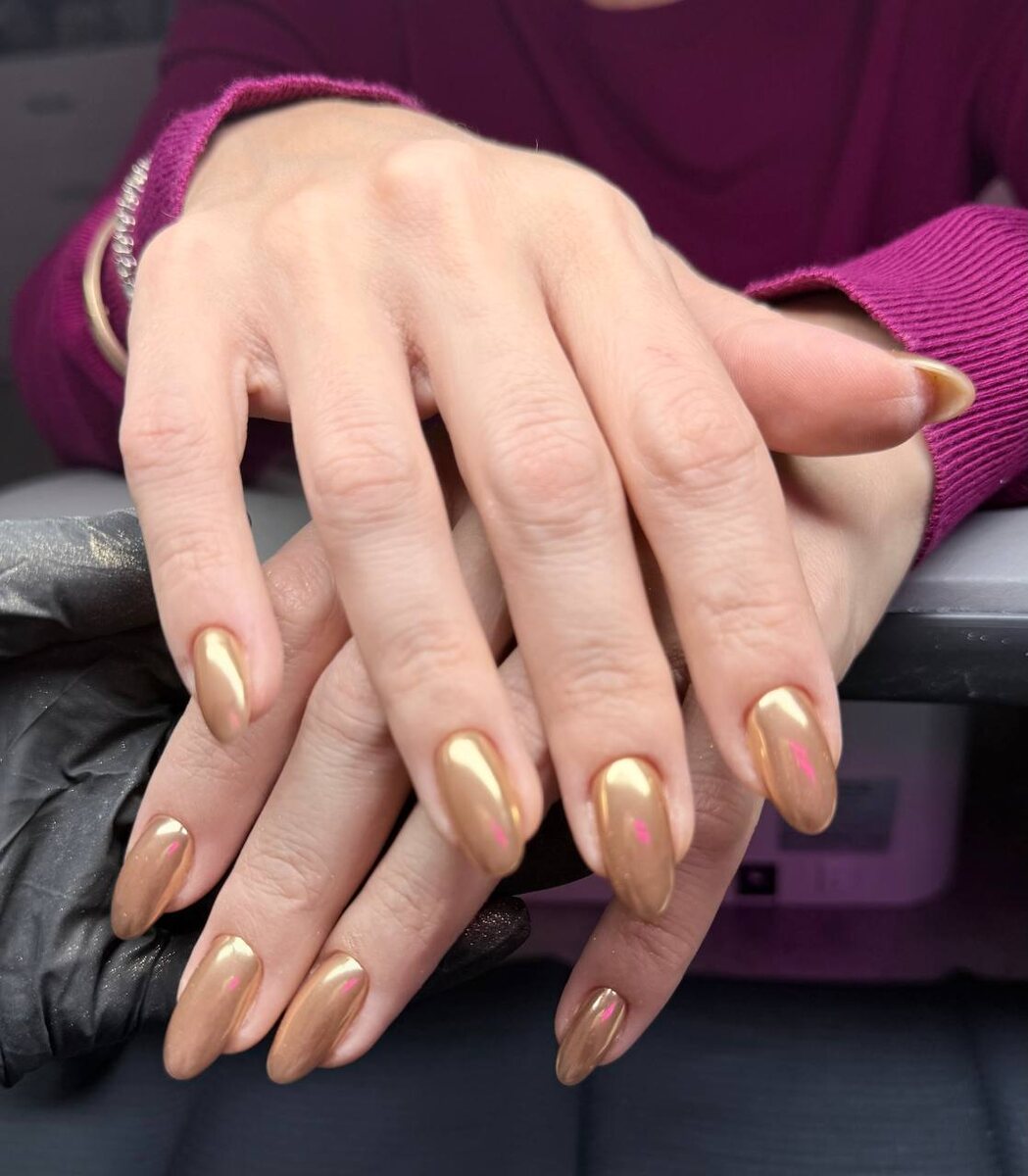 🙂 На 1 фото 👆🏻 золотая втирка (люблю ее), можно было и так оставить, но покрыли красным витражным топом 👉🏻 вуаля - мой новогодний маникюр в стиле елочной игрушки на 2 фото 💅 В общем, необычно и быстро - все как я люблю и раз платье моё не красное, цвет Нового года 🎄- на ногтях 🤭 А если кто-то ещё не выбрал дизайн для новогоднего маникюра 👉🏻 здесь я предложила варианты ❤️❤️❤️ #будниастролога