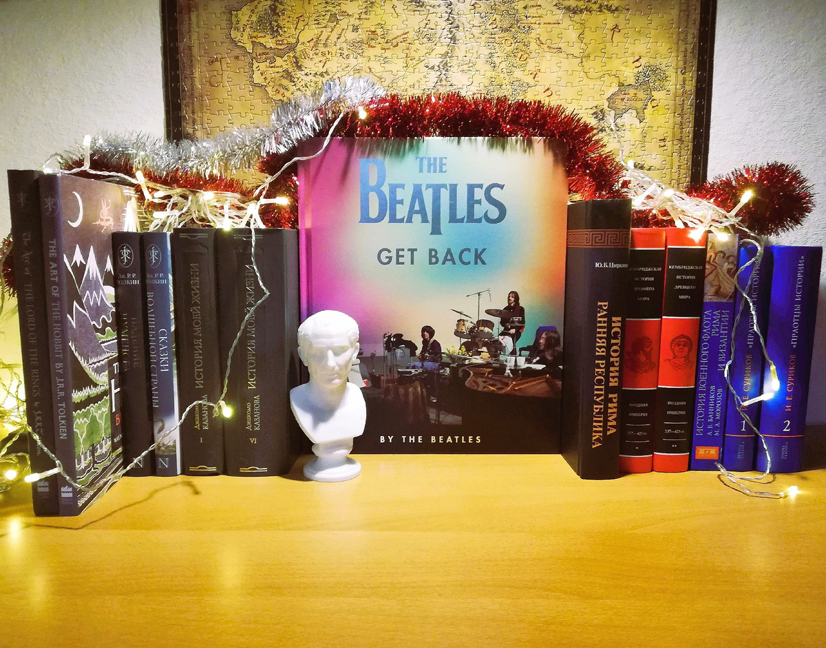Первый фаворит – это книга "Get Back" bу The Beatles, посвященная работе группы над одноименным проектом в январе 1969 года (что впоследствии станет альбомом "Let It Be"). Книга большого формата. Внутри огромное количество фотоснимков и снимков с кинопленки, которые сопровождаются расшифровкой бесед, что ежедневно велись членами группы при работе над альбомом. Основной материал книги предваряет предисловие режиссера Питера Джексона. Именно он в 2021 году выпустил документальный фильм о проекте "Get Back". В фильме мы можем воочию увидеть процесс музыкального творчества The Beatles в студийных условиях. И книга, по сути, носит сопроводительный характер к фильму (и включает те дни, что в фильме отражены мельком). Тут мы можем прочитать, что музыканты говорят о своих песнях, как они обсуждают личные проблемы или делятся впечатлениями о ТВ-передаче, что показывали накануне вечером. К ним в гости приходят известные люди тех лет. Короче, это ещё одна возможность увидеть с человеческой стороны, что представляли собой в то время Джон Леннон, Пол Маккартни, Джордж Харрисон и Ринго Старр.