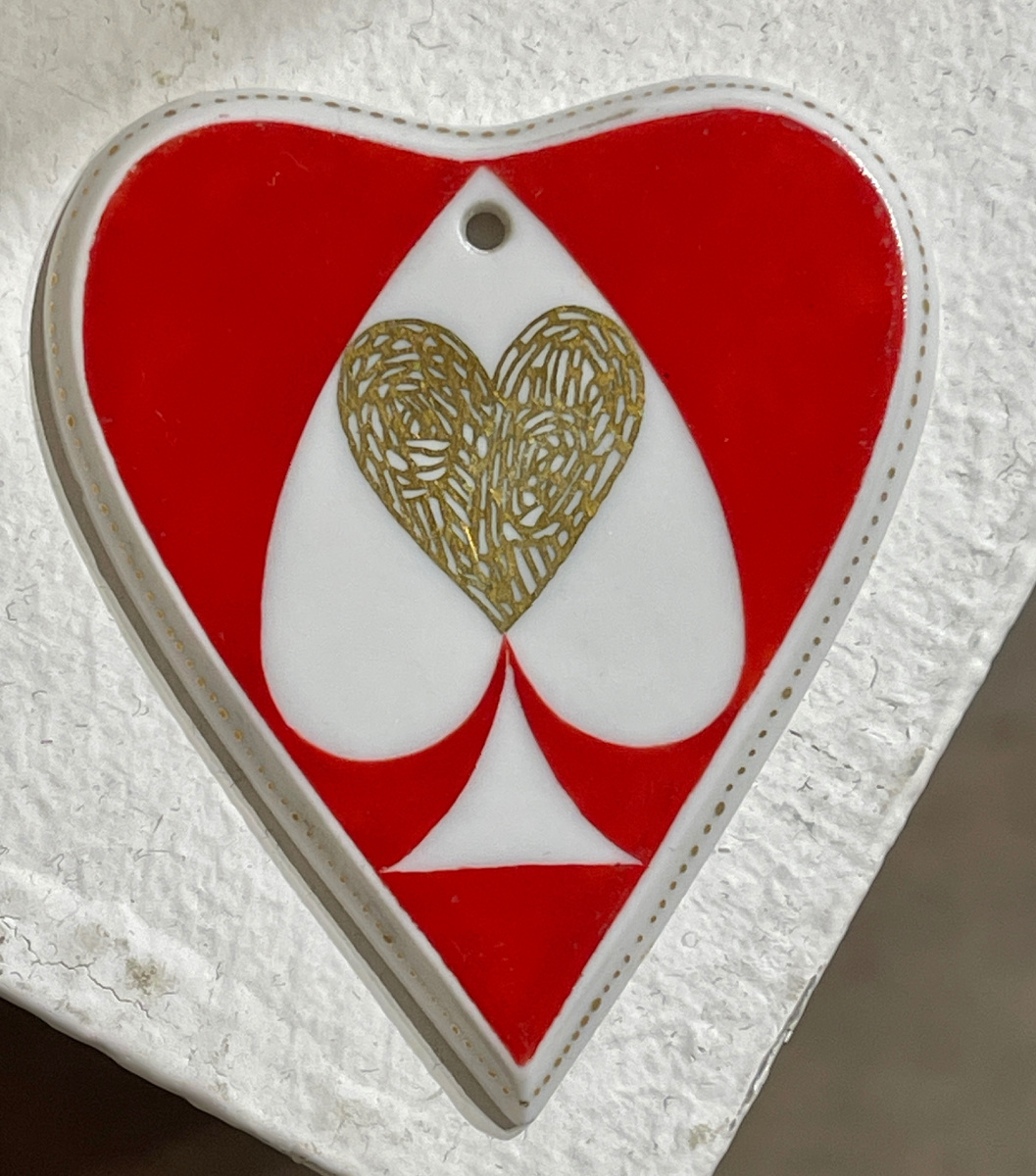 Зашла в арт-галерею на Большой Конюшенной, у нас в Петербурге и увидела фарфоровые подвески с символами сердца - влюблённого, хрупкого, а также сломанного и разбитого.