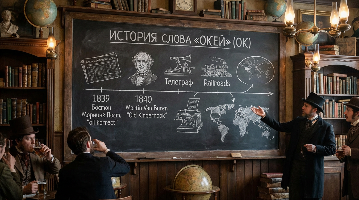 OK — редкий случай, когда две буквы заменяют целую фразу: «понятно», «согласен», «всё в порядке», «принято». Мы пишем «ок», говорим «окей», ставим «ОК» в переписке на автомате. При этом происхождение у слова не «древнее» и не туманное: у него есть довольно чёткая историческая точка старта — и она неожиданно… шутливая. В 1830-х в США (особенно в Бостоне) была популярна городская забава: придумывать неграмотные или шуточные выражения и сокращать их до аббревиатур. Что-то вроде старинного «мем-кода» для своих. В этой моде и появился OK как сокращение от фразы: “oll korrect” — намеренно «криво» написанное “all correct” («всё правильно»). То есть OK изначально — не «официальный термин», а остроумная игра: “oll korrect” → O.K.