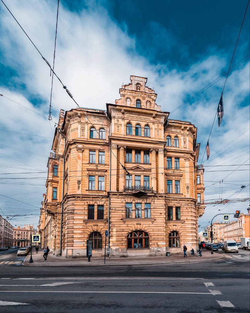 🏛 Это один из тех петербургских гигантов, которые поражали современников масштабом и роскошью. Построенный в 1877–1880 годах по проекту архитектора А.В. Иванова, он занял целый квартал между Невским проспектом, проспектом Бакунина и Дегтярной улицей. Купец первой гильдии Иван Васильевич Галунов не экономил ни на фасаде, ни на интерьерах: колонны, балконы, эркеры, изразцовые печи, деревянные паркеты, камины и – по тем временам редкость – ванные и ватерклозеты прямо в квартирах. Даже технические части комплекса были продуманы: собственная прачечная с паровой печью, кладовые и каменные амбары превращали дом в автономный «город внутри города». После смерти владельца в 1885 году здание перешло его наследникам, а в 1920–1930-е пережило удивительное переосмысление. Новый хозяин, Н.И. Муратов, превратил когда-то доходный дом в общественное пространство: во дворе появился сад с фонтаном, на первых этажах открылись детский сад, столовая, библиотека и кружки для школьников. Дом стал настоящим к