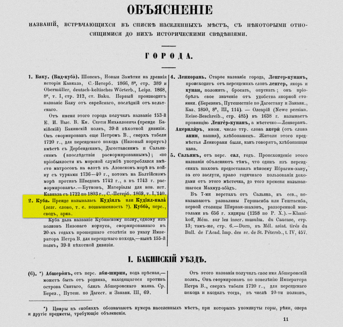 «Куба. Прежде называлась Кудиял или Кудиял-кала [лезгинское слово, т. е. возвышенность?]».