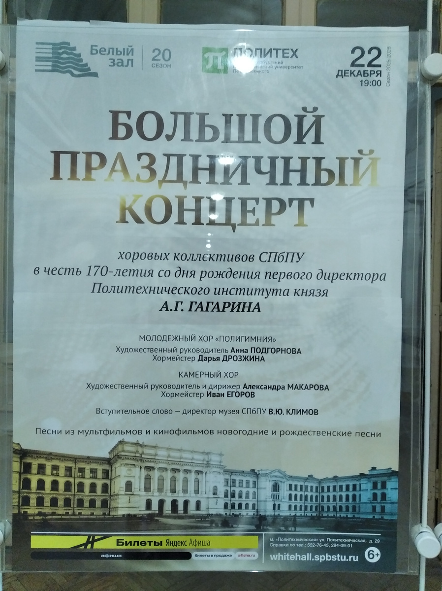 Сегодняшний концерт посвящен 170-летию со дня рождения первого директора Санкт-Петербургского политехнического института князя Андрея Григорьевича Гагарина.