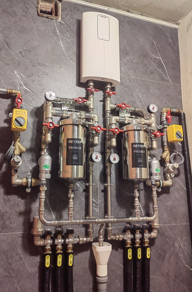 Квартирный узел водоснабжения с проточным нагревателем воды.