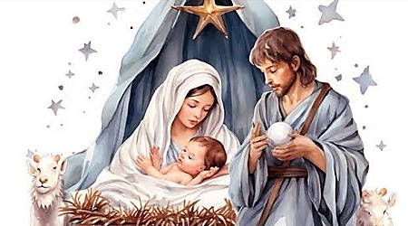 Программные задачи: Материал и оборудование: подвесной муляж звезды, напольный муляж пещеры, зеркальный шар с приводом вращения, проектор, гирлянды. Крупные силуэты: яслей с младенцем, месяца, быка, воробьёв, собаки, кошки, козлёнка, ослика. Костюмы для детей: Пальмы, Маслины, Ёлки, Ангела. Аудиозаписи: колокольного звона, «Аvе Maria» в исполнении Р. Лоретти (муз. Ф. Шуберта), «Рождество» из телефильма «Сказка о звёздном мальчике» (муз. А. Рыбникова), «На Рождество» (муз. и исполнение В. Дидюли). Ход проведения рождественского праздника Взрослые занимают места в зале. Звучит аудиозапись «Рождество» из телефильма «Сказка о звёздном мальчике» (муз. А. Рыбникова). Дети входят в зал на носочках друг за другом, становятся вокруг ёлки. песня «Зимняя сказка» (сл. А. Усачёва, муз. А. Пинегина). Ведущий (В.). Сегодня будет Рождество, Весь город в ожиданье тайны, Он дремлет в инее хрустальном И ждёт: свершится волшебство… И. Афонская «Рождественская песня» (сл. и муз. М. Австрияник) Дети садятс
