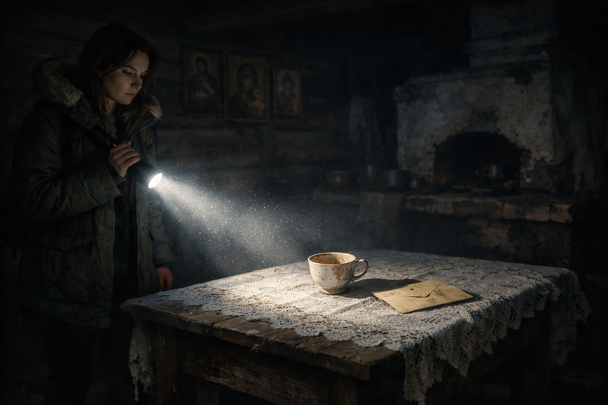 Посреди стола, покрытого кружевной скатертью, стояла чашка. Забытая хозяйкой. На дне — тёмный, давно засохший круг от заварки. А рядом, придавленный чайной ложкой, лежал раскрытый конверт.