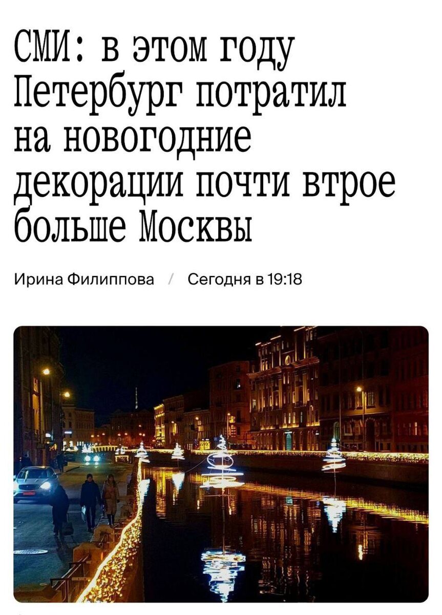 Власти Питера закупили новогодние декорации на 1,2 МИЛЛИАРДА рублей. Москва — всего 414 млн. Вдумайтесь: разница почти в 3 раза. Петербуржцы, которые ждали открытия нового метро на эти деньги: 🤔 CtrlAltDelights- подписаться