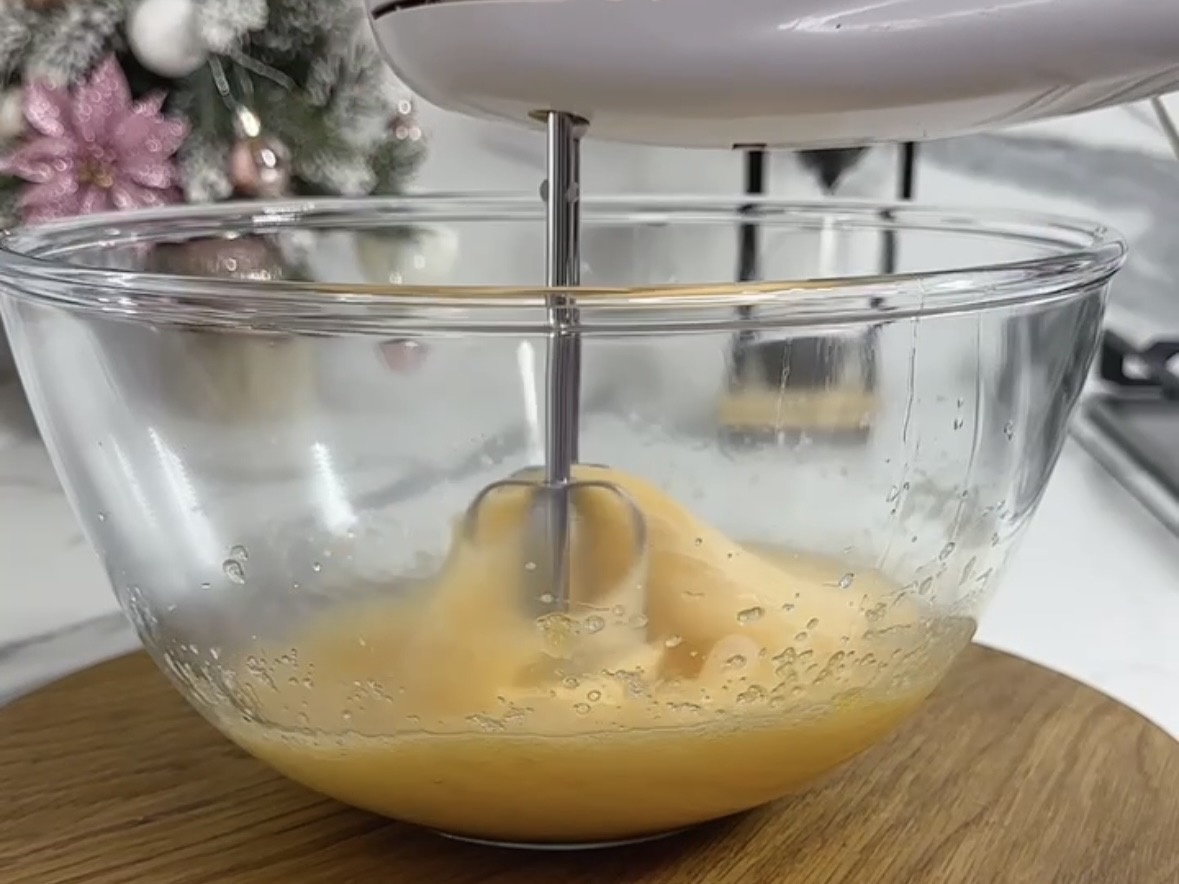 Яйца взбивала с сахаром до светлой пышной массы, затем добавляла муку, разрыхлитель и какао.