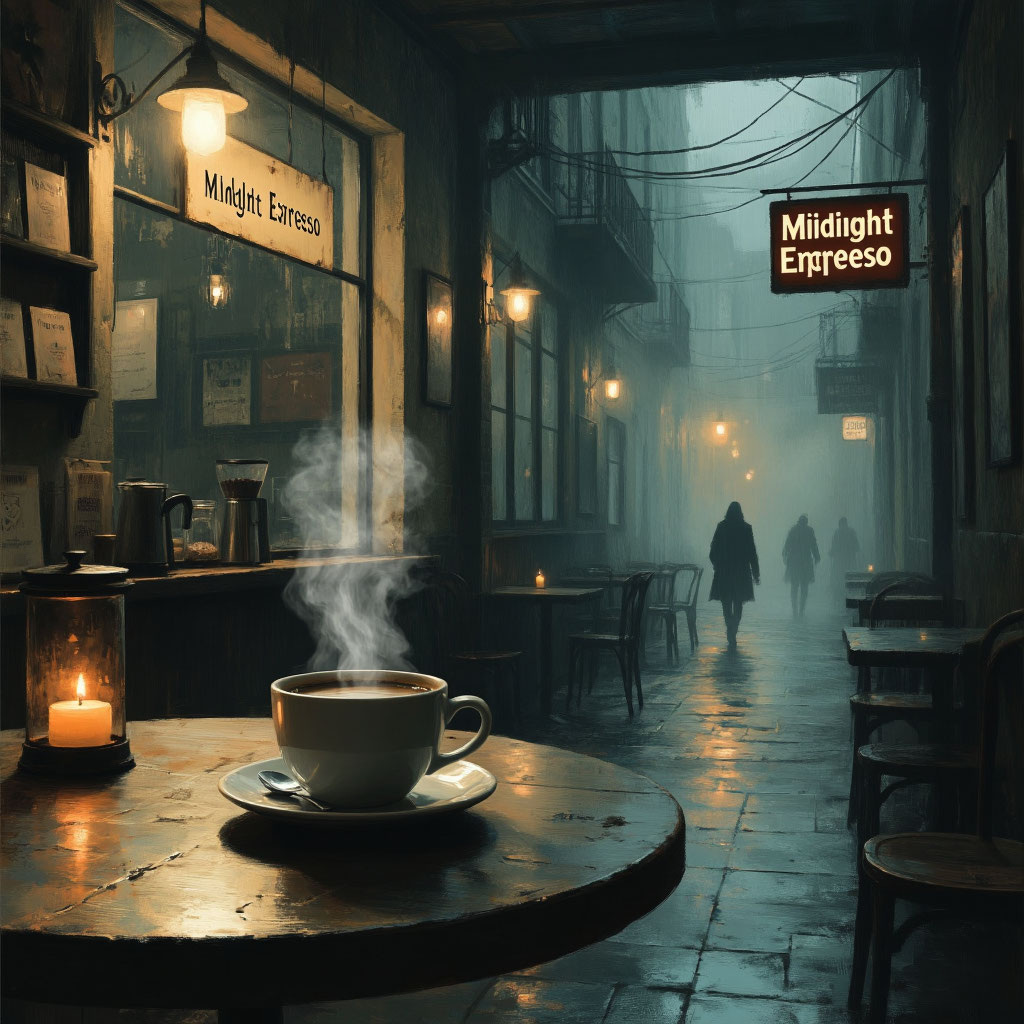 В четверг я сдался. Серая улица встретила меня туманом, густым, как пар от свежезаваренного кофе. Дверь «Полночного эспрессо» была приоткрыта — точно так же, как в первый раз.