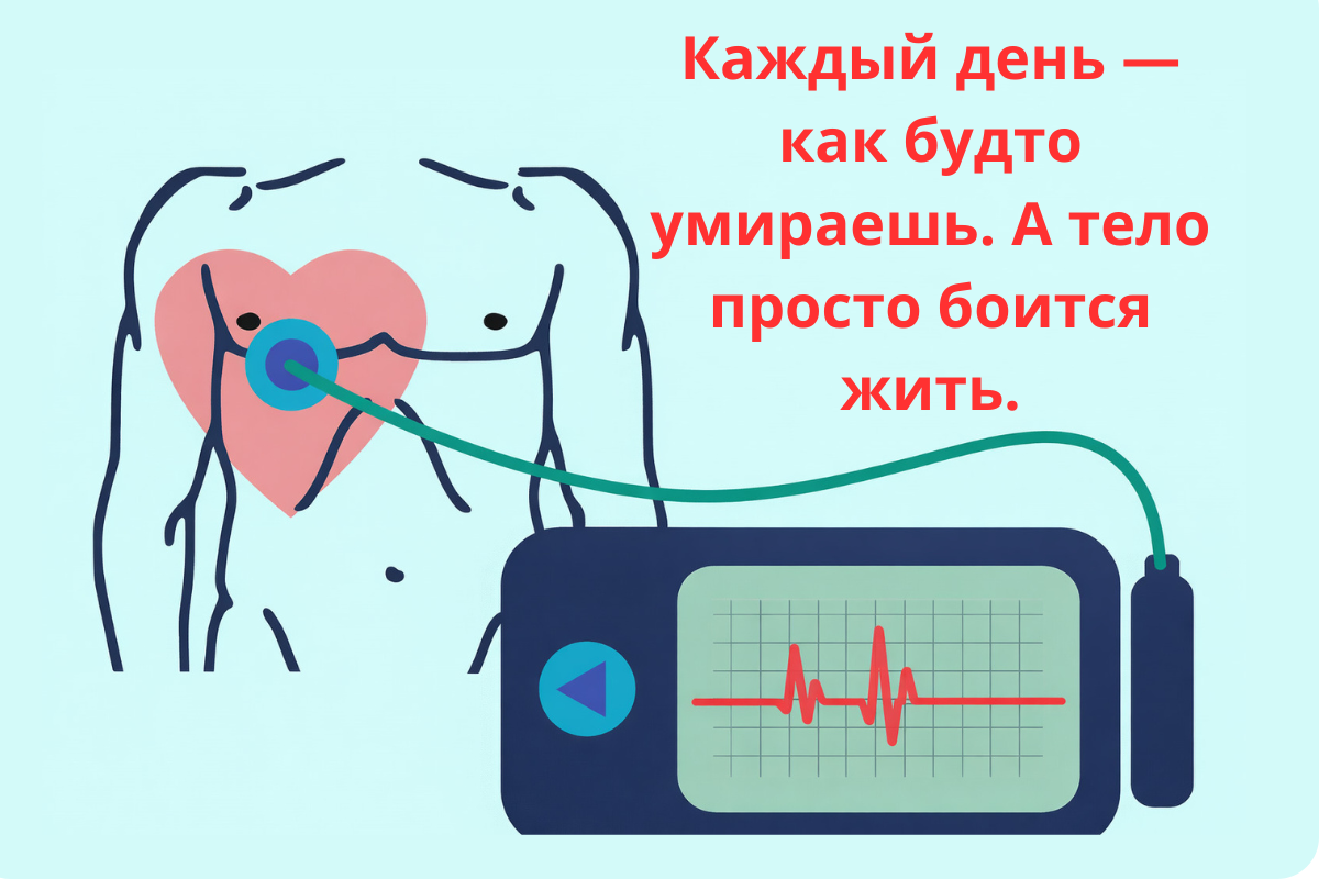 Хочу поделиться одной историей — и она очень типичная для тревожно-панического круга. Долгое время я был уверен, что со мной вот-вот случится инфаркт.