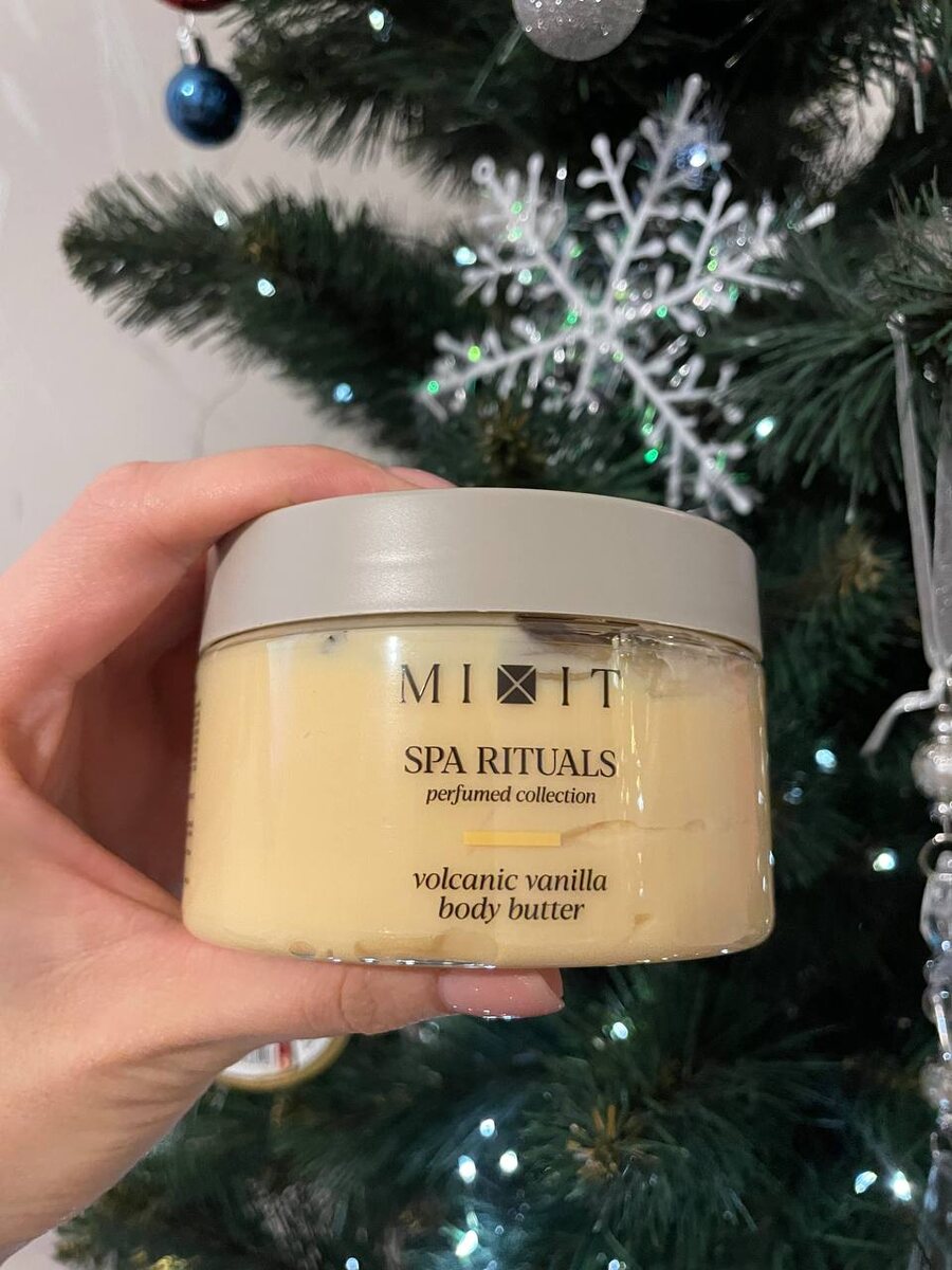 Парфюмерный крем с ароматом теплой ванили🐷Текстура воздушная ,нежная хорошо впитывается.🫠Я прям влюбилась в этот бренд Mixit ,у них столько всяких классных штук ❤️