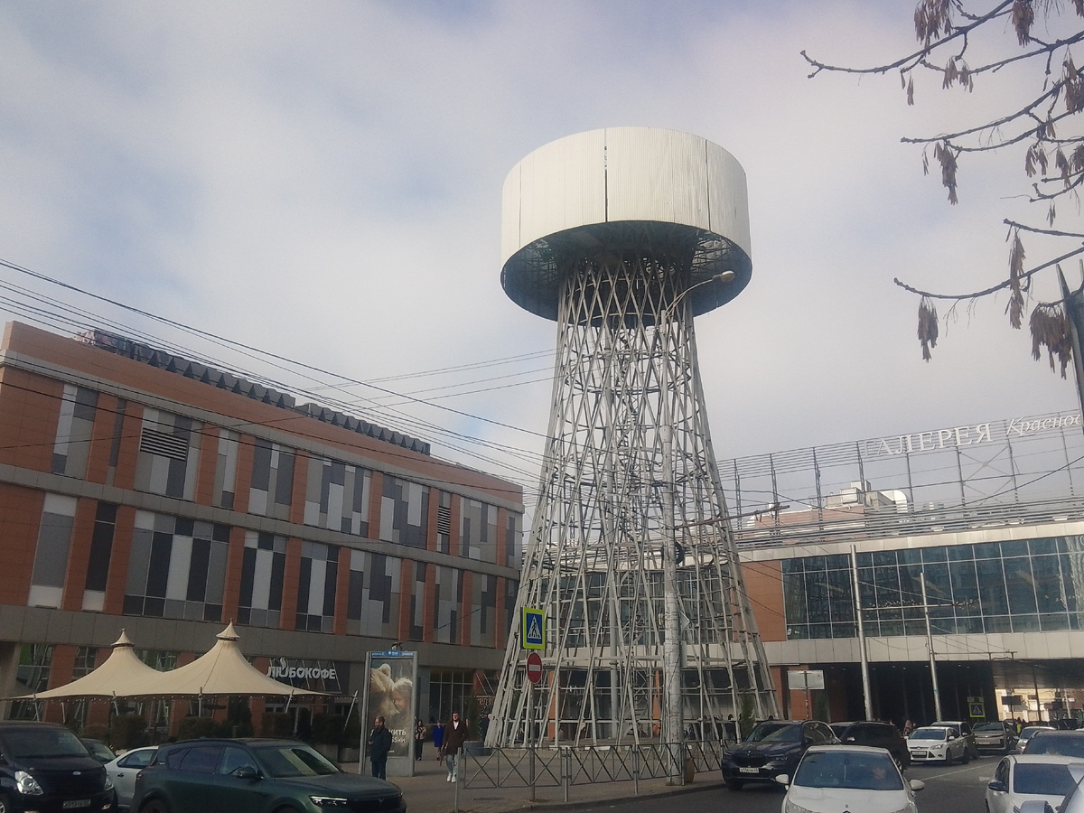 Шуховская башня стальная ажурная гиперболоидная конструкция, сетчатая расположенная в городе Краснодар на улице Рашпилевской и Володи Головатого между двумя очередями торгово -разаелекательного центра Галерея Краснодар.