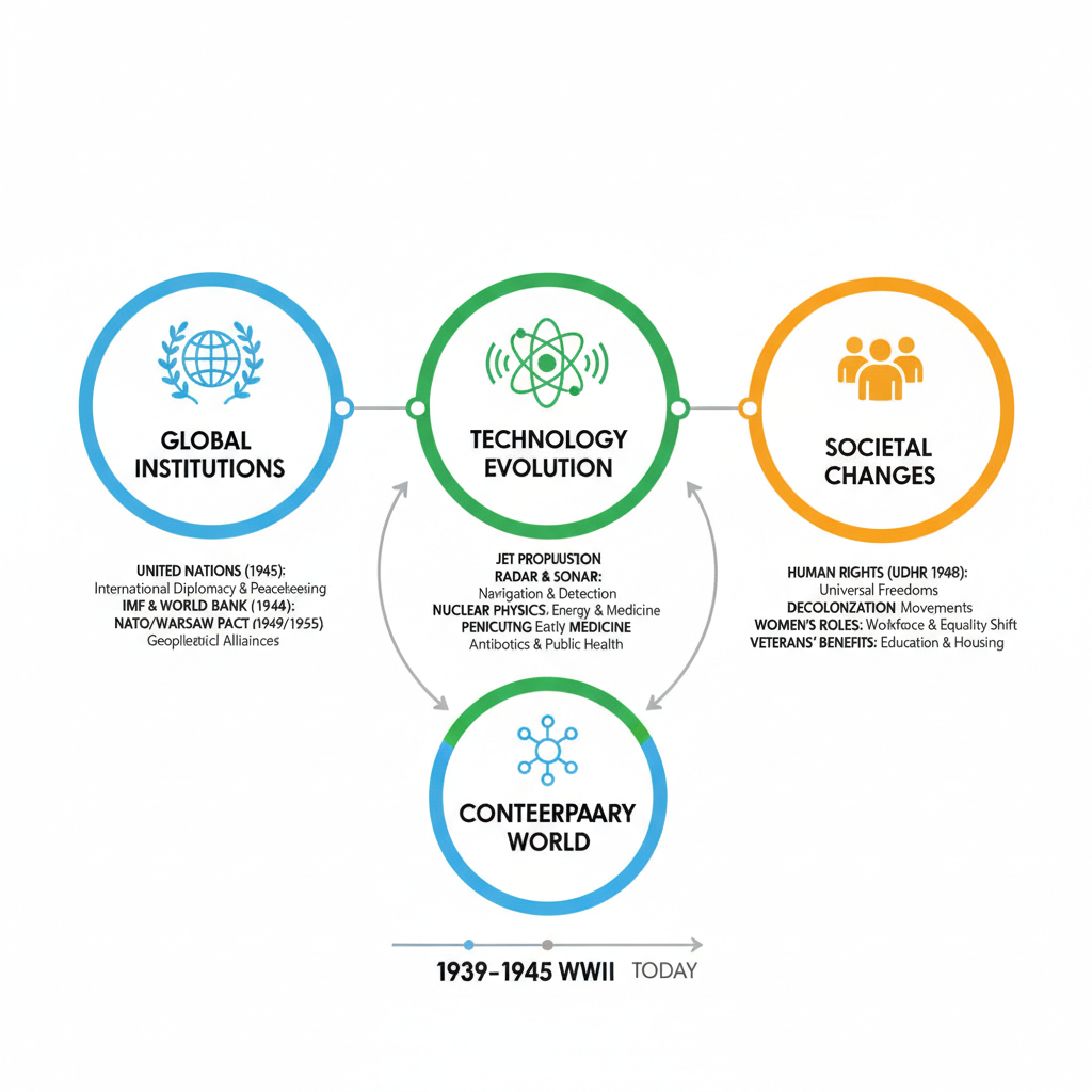 - Вторая мировая война определила современную архитектуру международных отношений, стала основой для формирования ООН и многих глобальных институтов. Изучение её уроков помогает предотвращать повторение трагедий прошлого.