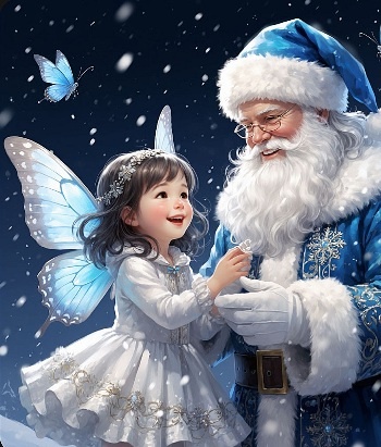 "Это я!?" - Принцесса растерянно оглянулась на Снегурочку, та улыбаясь кивнула. В это время искорки и пушинки, перемешавшись в воздухе, превратились в две закрученные ленты радужного серпантина. Одна лента упала к ногам девочки, превратившись в прекрасные расшитые золотом и серебром белые сапожки, отороченные как и платье, белоснежным мехом. Вторая искрящаяся лента осторожно обвилась вокруг головки девочки, переплетаясь с ее волосами. Маленькая Принцесса стояла, замерев от изумления, и не дышала, пока происходили все эти чудеса. Снегурочка-Бабочка подхватила растерянную девочку за руку и повернула к зеркалу:"Как? Нравится? А это - от меня! - она взмахнула рукой и за спиной Маленькой Принцессы появились легкие, блестящие крылышки, - Летай!" "Ой, это же эльфийские крылышки! - воскликнула Принцесса и, залившись счастливым смехом, взвилась в воздух, порхая вокруг елочки, - Оооёйооо!" - слышался ее счастливый смех.